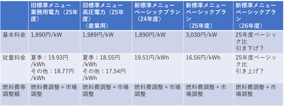 これにより、25年度ベーシックプラン比で基本料金を引き下げ、従量料金を引き上げると言われています。