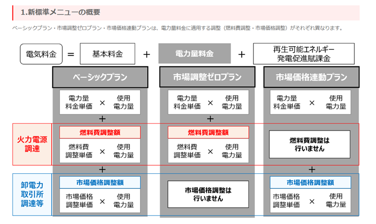 これらは、調達環境の変化や市場制度の変化を受け、この旧標準メニューは2026年3月末で終了(廃止)となることが決まっています。
