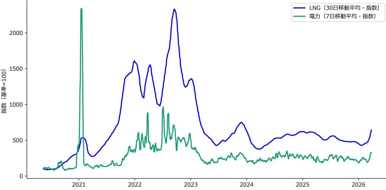 しかし足元では、カタールにおけるLNG設備の損傷等を受けて、エネルギーの「供給能力そのものの毀損リスク」を織り込み始めています。
