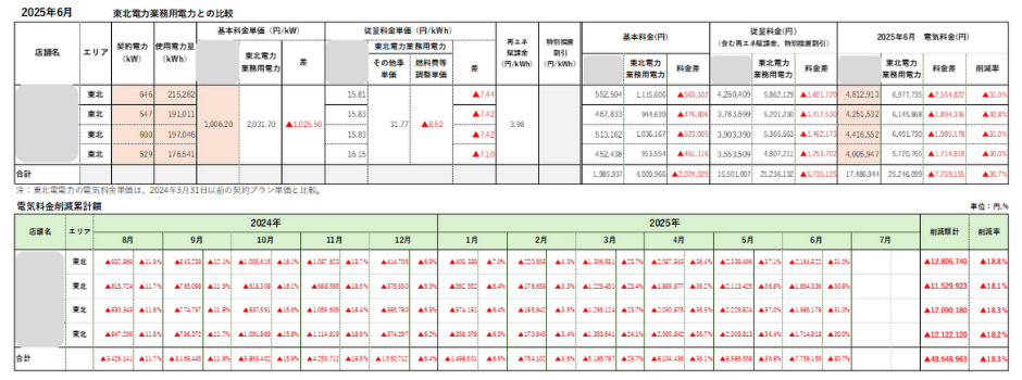 削減額、削減率を毎月レポート。投資家、経営層、上司への説明資料としてそのまま利用可能