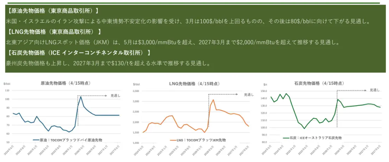 中東情勢の先行き不透明感が強まる中、原油・LNG・電力価格は不安定な状況が続いており、電気料金の変動リスクが高まっています。